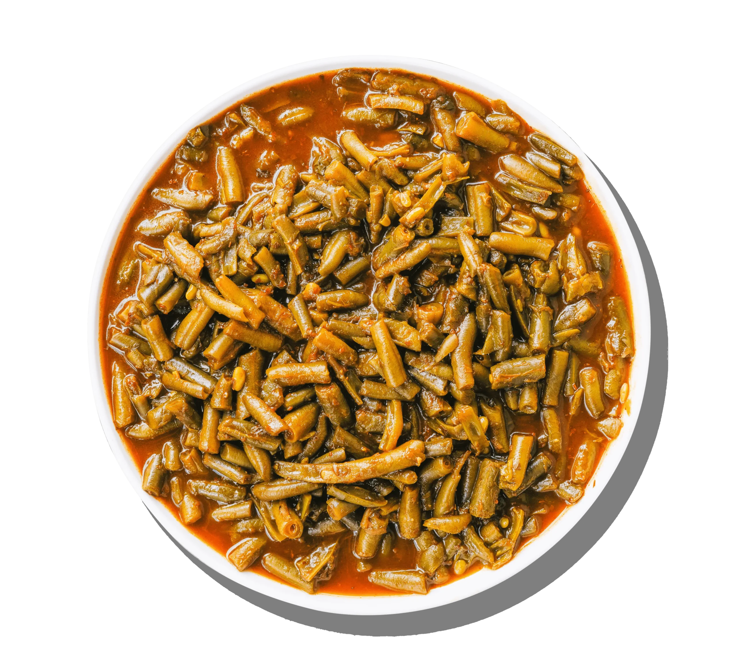 Green beans in tomato sauce are a classic Mediterranean side dish known for their comforting simplicity and bold flavor. This version features tender green beans slowly simmered in a rich tomato base, infused with chopped garlic, fresh cilantro, and finished with a touch of bright lemon juice.